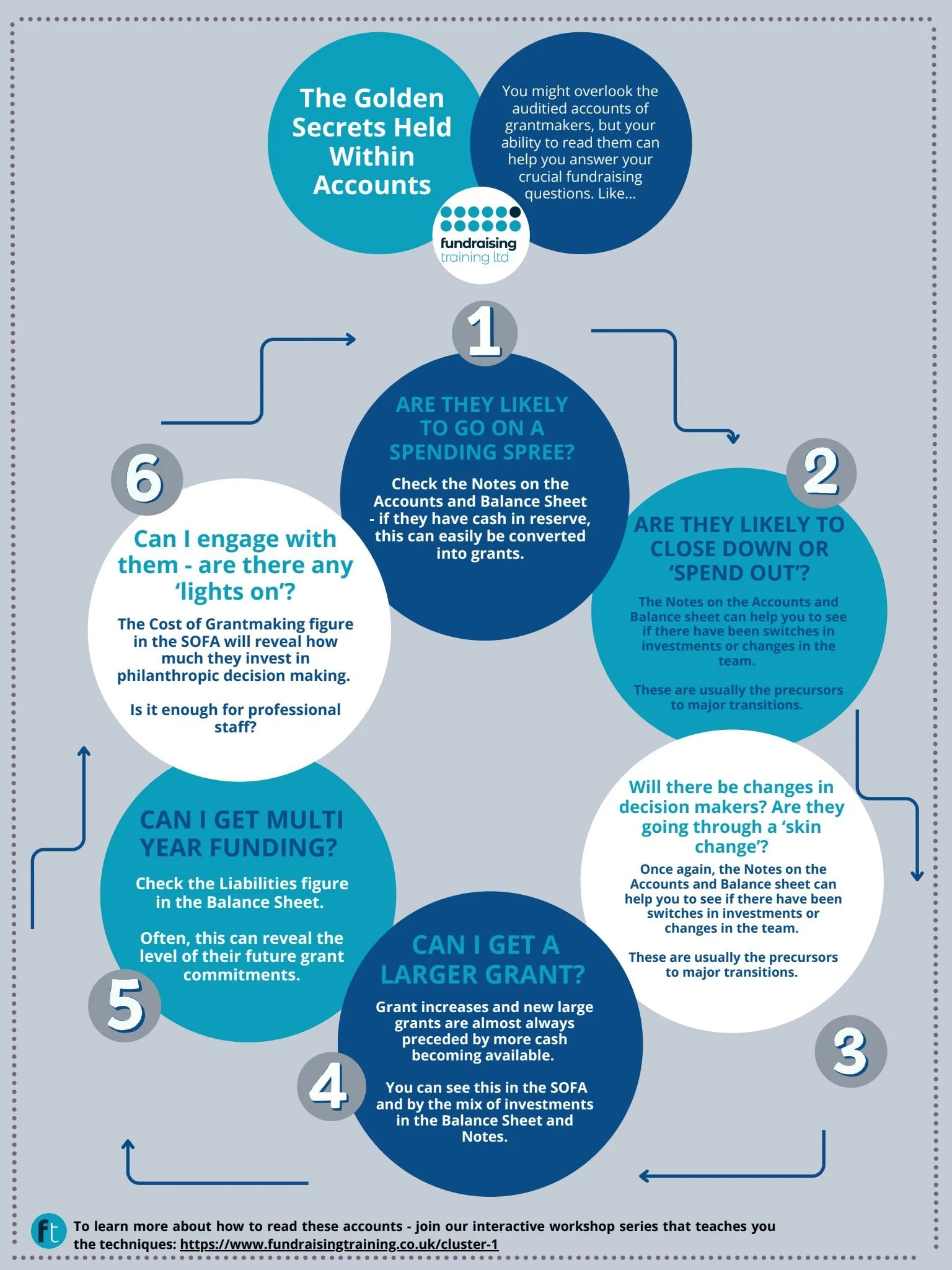 By understanding these accounts you can predict changes in grant making and decision making. A decent understanding of accounts will radically transform your targeting and success rate.